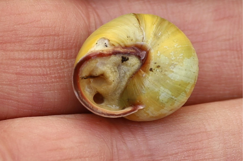 Les lèvres foncées, l'ouverture bien arrondie et la taille par rapport aux doigts (si j’anticipe correctement) m'oriente plutôt vers Cepaea nemoralis.